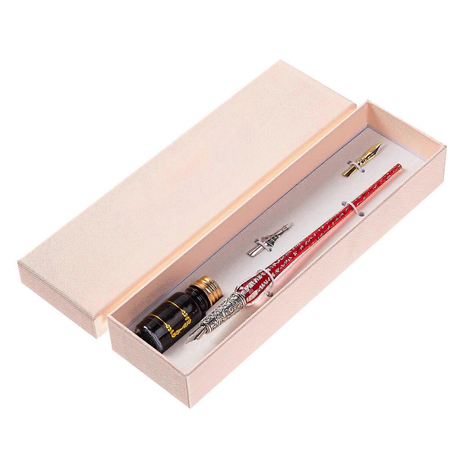 Retro Glass Dip Pen Kits with 2 Replacement Pen Nib and Ink, Antique Dip Pen Gift for Gothic Calligraphy Writing Drawing