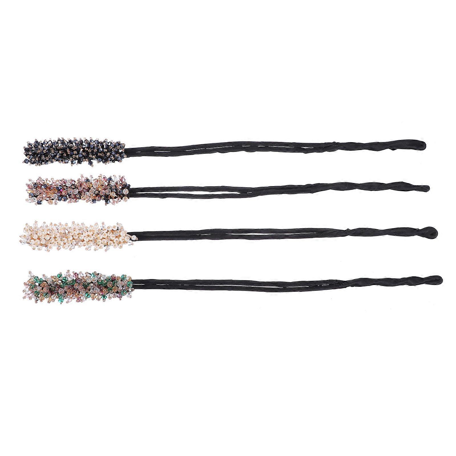 Rhinestone Hair Bun Maker for Women 4 Pieces Crystal Wire Assorted Color