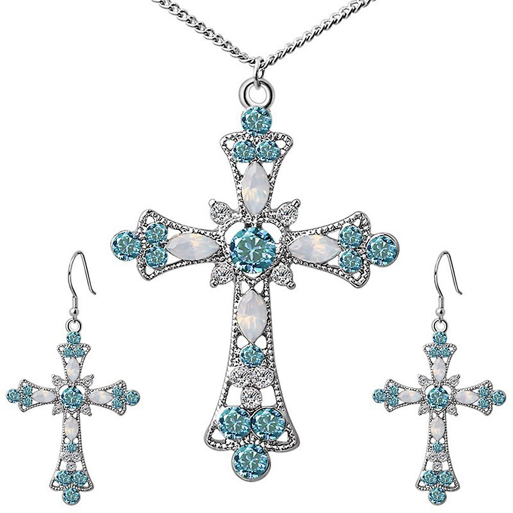 Specifications:Featuring cross pendant with shiny rhinestone adorned, exquisite and beautiful to wear.Come with earrings and necklace, matching well with your dress or blouse for an elegant and tender appearance.Suitable for party, wedding, banquet, appointment or just daily wear. Perfect gift ideals for mom, grandma, daughter, wife, girlfriend, sister or friends.Type: EarringsGender: Women'sStyle: ElegantMaterial: AlloyOccasions: Daily Life, Wedding, Banquet, Party, Dating, etcFeatures: Rhinestone Inlaid, Cross Pendant, Anti-allergy, GiftChain Length: 45cm/17.72" (Approx.) Pendant Size: 4.3cm x 3cm/1.69" x 1.18"(Approx.) Earring Length: 5cm/1.97, Width: 2.3cm/0.91"(Approx.)Notes:Due to the light and screen setting difference, the item's color may be slightly different from the pictures.Please allow slight dimension difference due to different manual measurement.Package Includes:1 Pair of Earrings 1 x Necklace