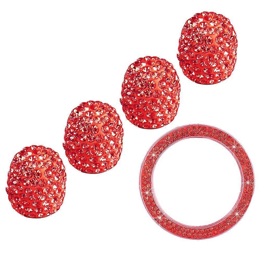 Rhinestone Tire Dust Cap Car Stem Cap for Ignition Button Decoration 5Pcs Set