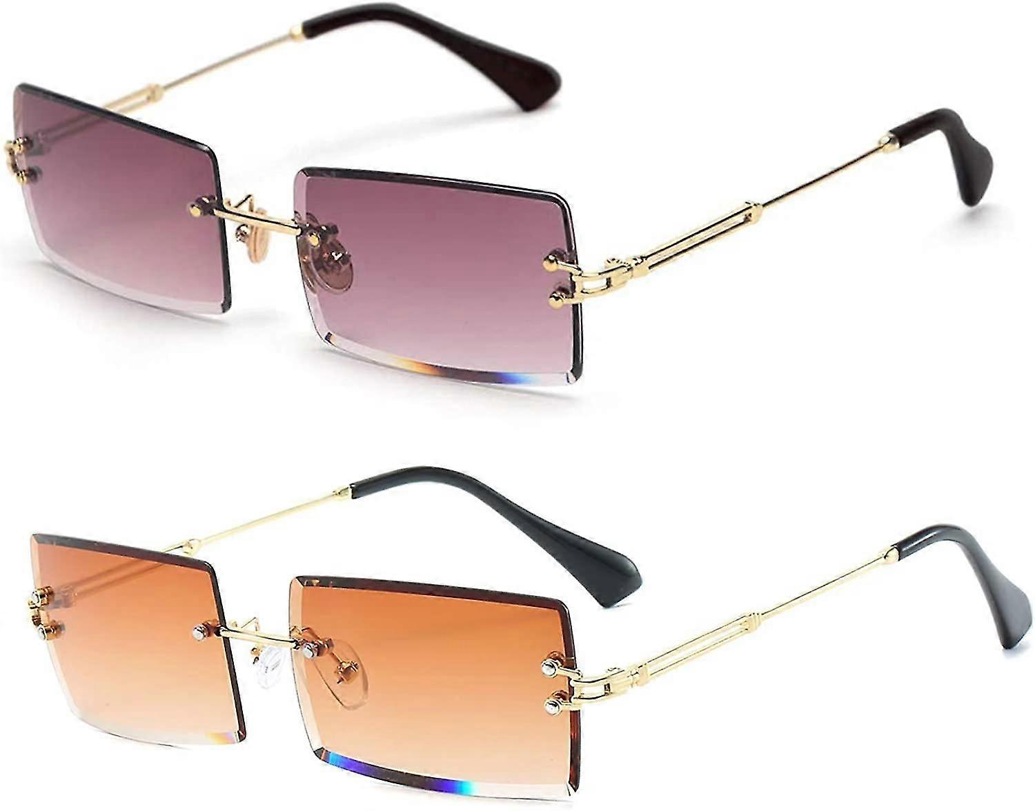 Rimless Rectangle Sunglasses For Women/men light Metal Frame Eyewear Fashion Square Uv400 Glasses Unisex