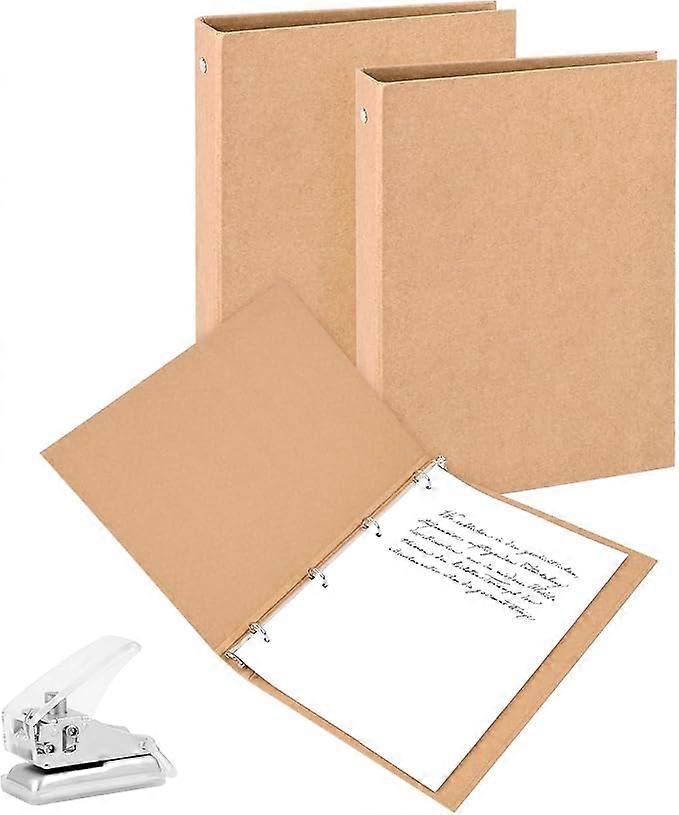 Ring Binder A5 Refillable Kraft Paper, 2 Piece Set with Punch, Ring Binder Folder A5 with 2 Rings for Adding Brochure Cover Papers Loose Sheets for Sc