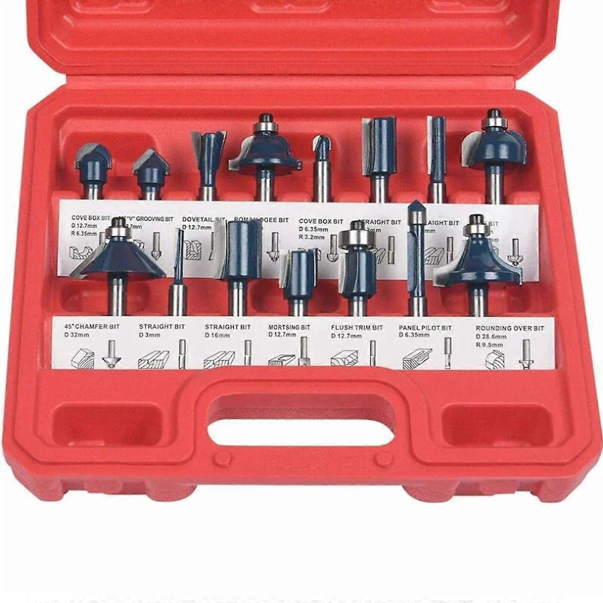 Router Bits, 15 PCS Straight Slot Bits, Slot Bits Set Wood Cutter Cutting Woodworking Tools (Plastic Box)