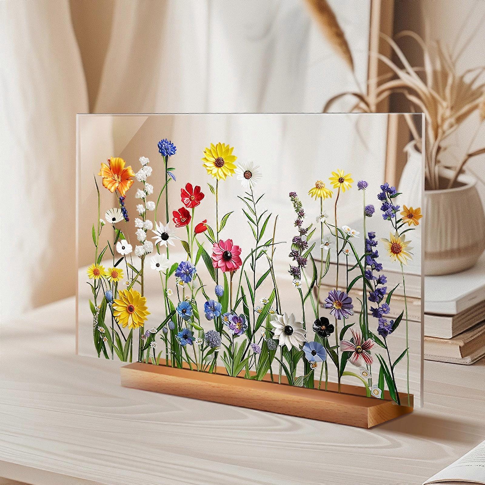 Ruhiku GW 8.27x5.9" Acrylic Floral Decor, 2mm Frameless with Wooden Base, Lightweight, compatible with Kids Room/Birthday/Wedding/Party/Shop Decor
