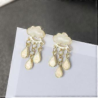 S925 Silver Needle Weather Theme Rainy Cloud Earrings, Cute Little Fresh White Cloud Raindrop Earrings (raindrop)