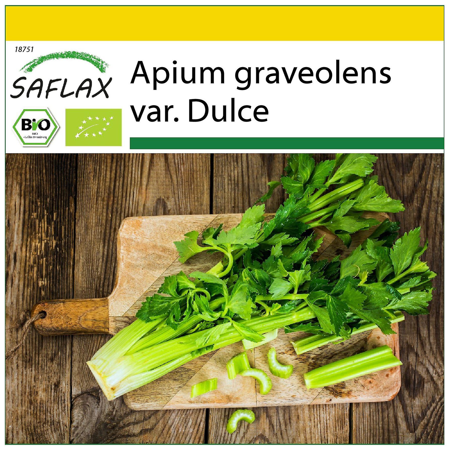 Saflax - Organic - Pascal celery - Tall Utah - Apium graveolens - 500 seeds - Low-calorie Super-vegetable – delicious and healthy as a smoothie or juice. Our cultivation set contains everything you need for successful cultivation. An English mini greenhouse (17 (L) x 10 (W) x 13 (H) cm), germ-free dried coconut fiber substrate, 2 pots, pricking rod and plant sign. Worth knowing: The Pascal celery comes from wild celery and is known in the Mediterranean region as a tasty and effective medicinal plant since way back. It is said to have an aphrodisiac effect and its contents are anti-inflammatory and diuretic.. Pascal celery is a basic component of the raw food cuisine and can be used for salads or finger food for dipping. Of course, it’s an important ingredient for the original Italian Sauce Bolognese. Prepared as a smoothie or juice, celery is a great provider of secondary plant extracts, antioxidants, vitamins, bitter substances and essential oils. Natural Place: Wild celery originated in the nutrient-rich limy and saline marsh soils of the European Mediterranean and Atlantic seaboard regions. Cultivation: With March, you best start propagation indoors on a sunny window sill. After 6 to 8 weeks, you can plant the seedlings out in May. To enhance germination you can soak the seeds in water overnight for priming. Then, place the seeds about 0,5 cm deep into the earth, give only a little bit of substrate on top and cover the seed container up with clear film. Don’t forget to poke some holes in the clear film as well, to prevent mold formation on your potting compost. A bright window sill with around 16° to 20° Celsius room temperature would be the perfect place for germination. When the seedlings show 2 or 3 well-developed leaves they can be moved into small pots and kept - with around 16° to 18° Celsius - a little bit cooler before planting out later on. About two weeks later, you should provide some fluid fertilizer for the first time. It is recommended to harden the young plants by placing the pots in a bright and somewhat protected place in the garden for a couple of days prior to planting out. The seedlings should be planted with a distance of 50 x 50 cm to each other and not deeper than initially in the pots. Place: Pascal celery prefers sunny to semi-shaded locations. As a heavy feeder the plant wants a nutrient-rich soil that is somewhat limy and sufficient moist. Care: This plant needs nutrients from the beginning and it should be watered regularly and generously, especially on hot days. Waterlogging should be avoided. After planting out, you should also constantly provide organic vegetable fertilizer. Due to its high sodium and boric demand, it is recommended to water the celery plant with stale saline cooking water. The pascal celery is ready to harvest in October. Since the plant is not hardy it should be harvested before the first night frost by pulling the whole plant including its roots out of the earth. For storage, cut the stalks 10 cm above the first leaf ramification, wrap them in newspaper and place them with the rooting next to each other in a box filled with moist sand. When kept in a cool basement your celery will stay fresh for up to eight weeks with this method. During Winter: Celery is sown again next year. Bonsai: No Picture credits: Because of technical limitations links are shown as text. 38751-apium-graveolens-seed-package-front-german.jpg - About © : Contact SAFLAX - - saflax.de/copyright 18751-apium-graveolens-cultivation-instruction-german.jpg - Frank Laue - © Saflax - saflax.de/copyright 18751-32-apium-graveolens.jpg - About © : Contact SAFLAX - - saflax.de/copyright 18751-33-apium-graveolens.jpg - About © : Contact SAFLAX - - saflax.de/copyright 18751-34-apium-graveolens.jpg - About © : Contact SAFLAX - - saflax.de/copyright 18751-34-apium-graveolens.jpg - About © : Contact SAFLAX - - saflax.de/copyright 18751-35-apium-graveolens.jpg - About © : Contact SAFLAX - - saflax.de/copyright 18751-36-apium-graveolens.jpg - About © : Contact SAFLAX - - saflax.de/copyright 18751-37-apium-graveolens.jpg - About © : Contact SAFLAX - - saflax.de/copyright
