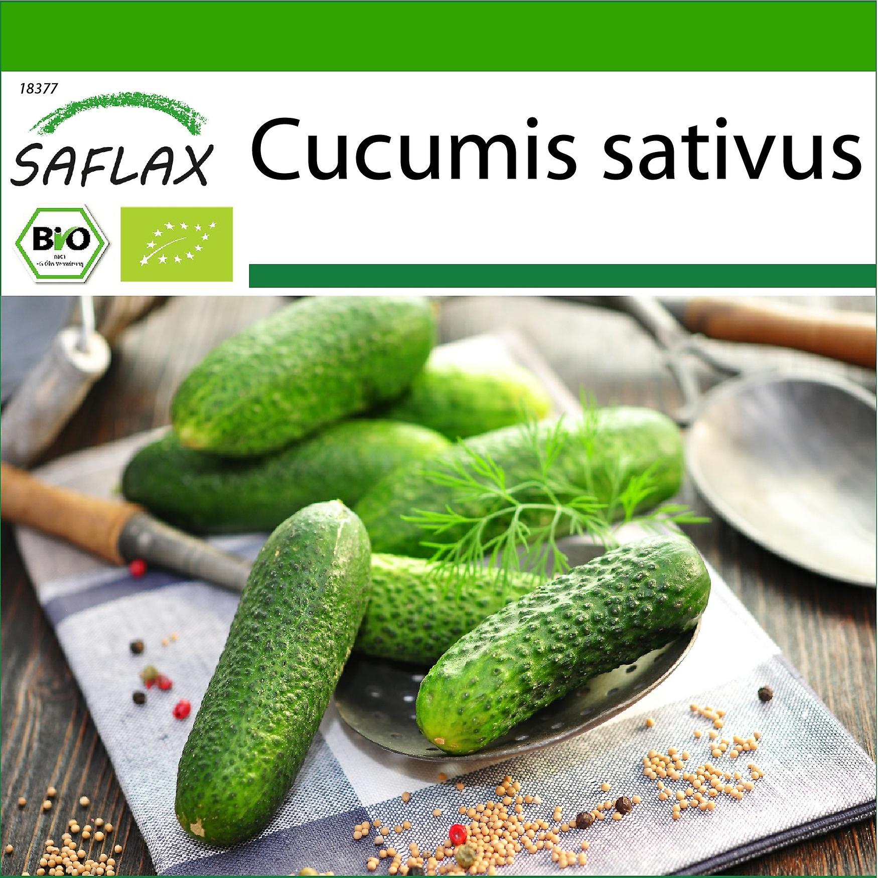 Saflax - Organic - Cucumber - Vorgebirgstraube - Cucumis sativus - 15 seeds - Homemade gherkins – directly from your garden into the jar. With germ-free and air-permeable coconut fiber substrate for successful cultivation. Worth knowing: Gherkin is a sturdy and high-yielding pickling cucumber variety that produces small, aromatic fruits. Smaller fruits are perfectly suited for pickling as cocktail gherkins and bigger ones are best for pickling with mustard seed. Cucumbers are basically a kind of solid mineral water since they’re composed to 97 % of water and also contain valuable ingredients, like potassium, calcium, magnesium and vitamin C. . You can expect to harvest the cucumbers regularly from the end of July. Ideally, you will be able to pluck fresh cucumbers twice a week until the end of September. Pickling gherkins by yourself is very simple: first, wash out the jars with boiling hot water for disinfection, then, clean the gherkins properly under running water, split up a bunch of dill and wash it properly with water as well, slice up an onion. Now, you bring one litre of water and half a litre of common vinegar or white wine vinegar along with two tablespoons of salt to boil. Meanwhile, you can fill up the jars with the prepared gherkins, dill and onion slices. Pour the boiling vinegar water full to the brim into the jars and seal them. Keep the jars under cool and dark conditions for at least 2 to 4 weeks to allow the gherkins to absorb the flavour of the stock. Natural Place: The origin of the Gherkin is still a matter of dispute among experts, but it is presumed somewhere between Africa and India. Cultivation: Pre-propagation should only be started from the middle of April to ensure that the plants don’t grow too tall before planting out. Plant the seeds about 2 cm deep into a pot that is filled only half with moist coconut substrate or organic vegetable substrate. Cover the seed container with clear film that you provide with a few small holes. That way the substrate doesn’t dry out, but also gets some air. Every second or third day, you might want to take the clear film completely off for about 2 hours to avoid mold formation on your potting compost. Place the seed container somewhere bright and warm with a temperature between 20° and 25° Celsius and keep the substrate moist, but not wet. The germination usually takes place after three to five weeks. As soon as the first leaves of the strongest seedling outgrow the rim of the pot, you should prick out the weaker sprouts and fill the pot with additional substrate. That way the seedling will develop so-called adventitious roots that colonize the soil more quickly. After the Ice Saints and with a padding provided, the plants can either be moved to a bigger pot or tub, or they can be planted out in the patch while leaving a space of about 60 cm between them. Place: Cucumbers prefer a warm and sunny place for cultivation that is preferably sheltered from the wind as well. Care: Cucumbers become quickly bitter with dryness. Therefore, you should water the plant regularly, but avoid water logging. Cucumbers usually grow on the ground, but in order to preserve space it is advisable to provide the plant with a strong trellis. Watch out for snails as they often go for the young cucumber sprouts