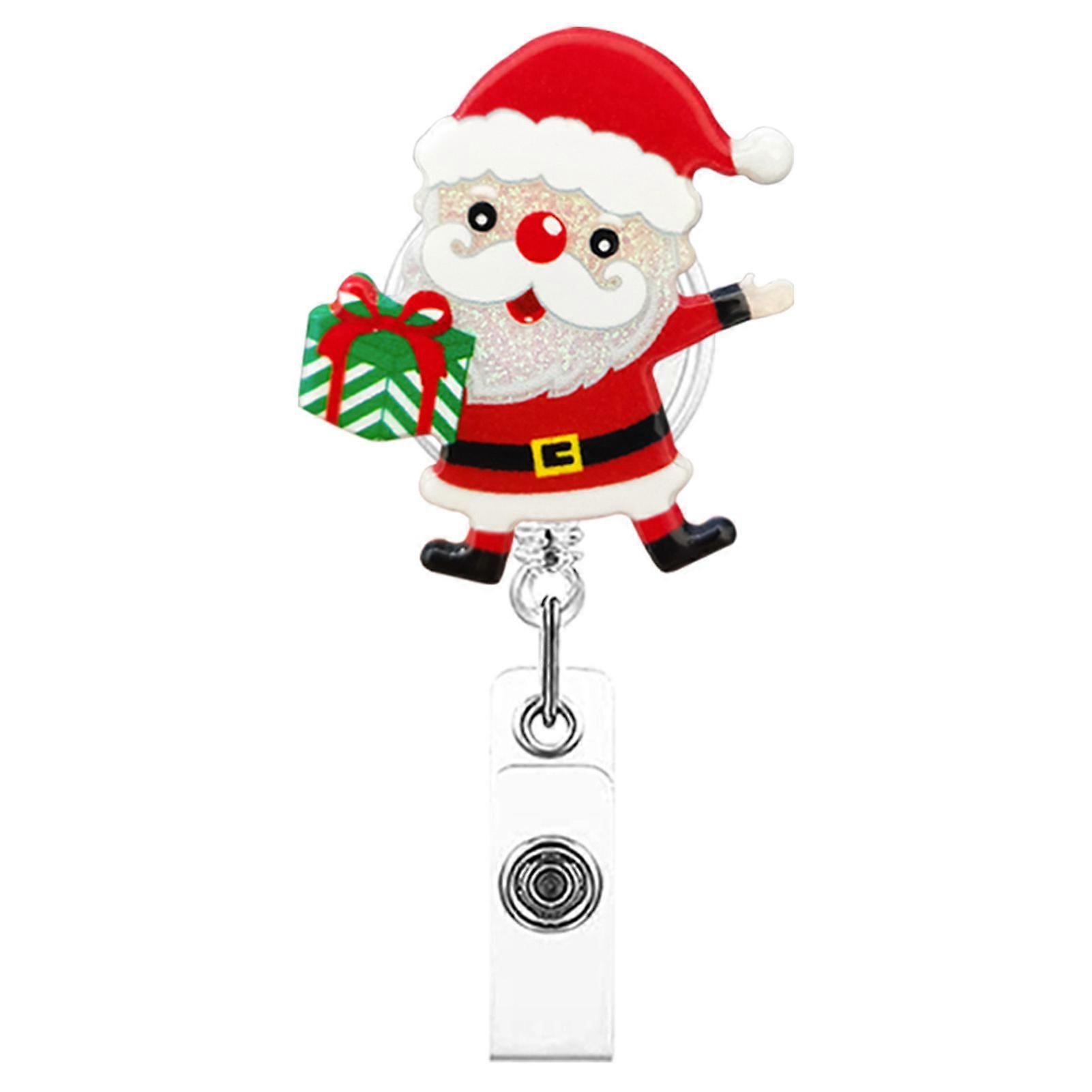 Christmas Badge Reel Holder Retractable Santa Clause Badge Reel for Women Student Teacher Employee