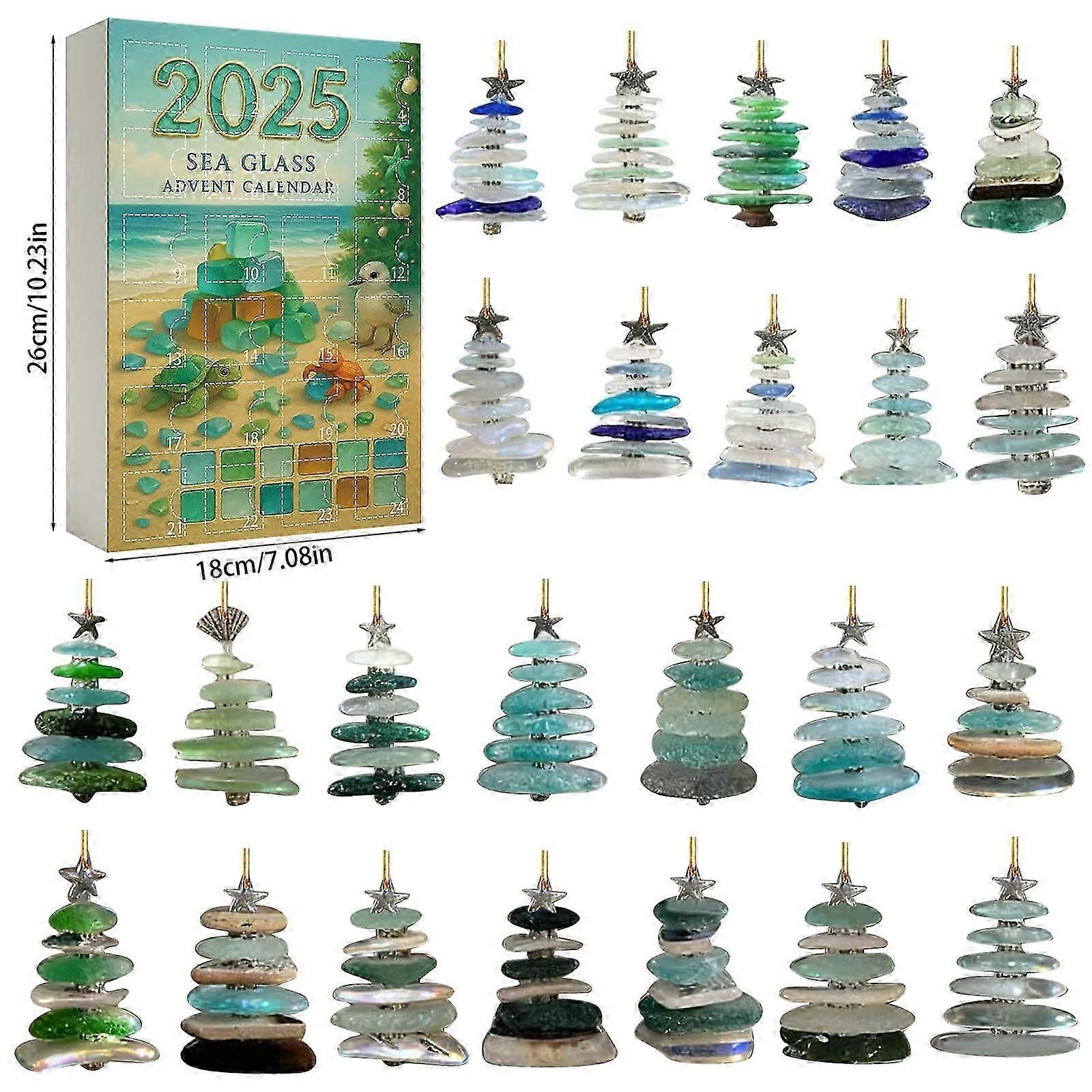 Sea Glass Christmas Tree Advent Calendar Blind Box Sea Glass Style Christmas Tree Ornament Acrylic Pendant