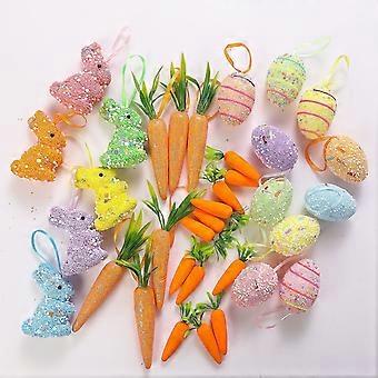Easter Egg and Bunny Decor Set, 6 Rabbit Ornaments, 12 Colorful Foam Eggs, 6 Carrot Hangings for Tree, Basket, and Spring Party Decoration,CZ