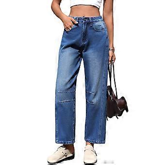 Women Trendy High Waisted Wide Leg Stretchy Baggy Ankle Denim Pants with Pockets Deep Blue M