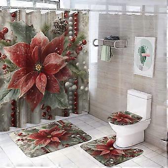 Σετ ντους 4 τεμαχίων με κόκκινο και λευκό αλεξανδρινό και χαλιά – Αδιάβροχο, συμβατό με τυπικές ντουζιέρες