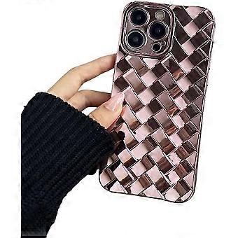 Electroplated Woven Phone Case, Light Luxury Soft Shell, Anti-Drop – compatible with iPhone 15/14/13/12 Pro Max Plus (Pink, compatible with iPhone