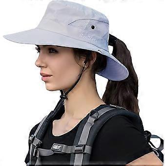 Γυναικείο καπέλο ηλίου με αλογοουρά, καπέλο εξωτερικού χώρου με φαρδύ γείσο και προστασία από την υπεριώδη ακτινοβολία, πτυσσόμενο καλοκαιρινό καπέλο ψαρέματος για παραλία UPF 50+