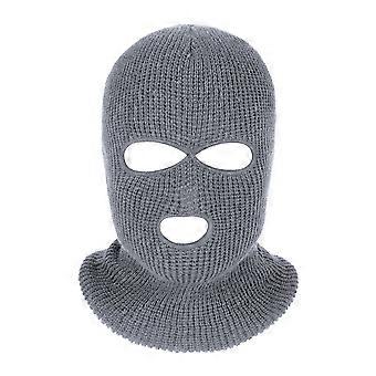 Πλεκτό κάλυμμα λαιμού με 3 τρύπες, χειμερινό καπέλο μπαλακλάβα για υπαίθριες αθλητικές δραστηριότητες και ποδηλασία για άνδρες και γυναίκες (καθαρό γκρι)
