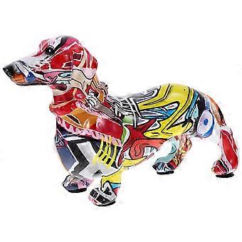 Ρητίνη Dachshund Άγαλμα Graffiti Dachshund Ειδώλιο Τέχνη Ζωγραφισμένη Διακόσμηση σκύλου