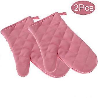 2Pcs/Set Pink High-temperature Thick Hot Insulation Microwave Oven Gloves Cooking Cotton Oven Mitts Kitchen Home Supplies
