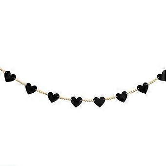 Γιρλάντα από ροζ τσόχα και ξύλινες χάντρες για την ημέρα του Αγίου Βαλεντίνου – Αγροικία, κρεμαστό τοίχου σε ουδέτερο χρώμα, χριστουγεννιάτικη διακόσμηση (μαύρη καρδιά)