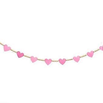Ροζ γιρλάντα με καρδιές και ξύλινες χάντρες για την ημέρα του Αγίου Βαλεντίνου – Διακόσμηση τζακιού αγροικίας, ουδέτερη διακόσμηση τοίχου, 92" – 1 τεμ.