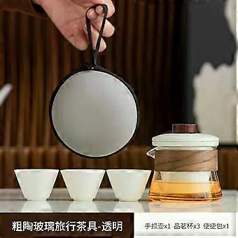 Exquisite Ceramic Outdoor Travel Tea Set One Pot Three Cups Storage Bag Set Portable Tea Pot and Cup Set Zen Tea Infuser