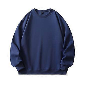 Men Sweatshirts Solid Color Long Sleeve Round Neck Pullover Hoodless Sweatshirt Male Classic Work Sweatshirts,Dark Blue,L