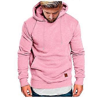 Men Hoodies Solid Color Long Sleeve Drawstring Pullover Hooded Sweatshirt With Pocket Male Trendy Vacation Sweatshirts,Pink,L