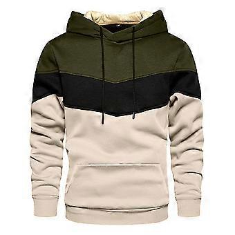 Men Hoodies Color Block Long Sleeve Drawstring Pullover Hooded Sweatshirt With Pocket Male Classic Sport Sweatshirts,Army Green,L