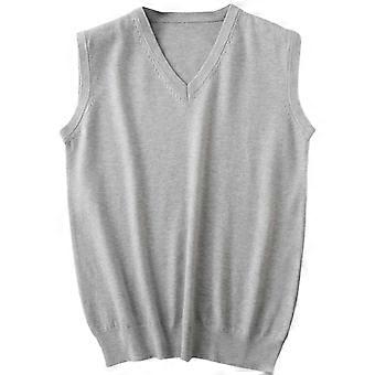 Men Sweater Vest Solid Color Sleeveless V Neck Knitted Vest Plain Pullover Tops Mens Leisure Holiday Party Vacation Sweater,Light Gray,L