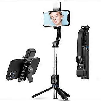 Selfie Stick Telescopic Tripod Stand LED Fill Light Detachable Phone Clip Holder with Bluetooth Remote Control