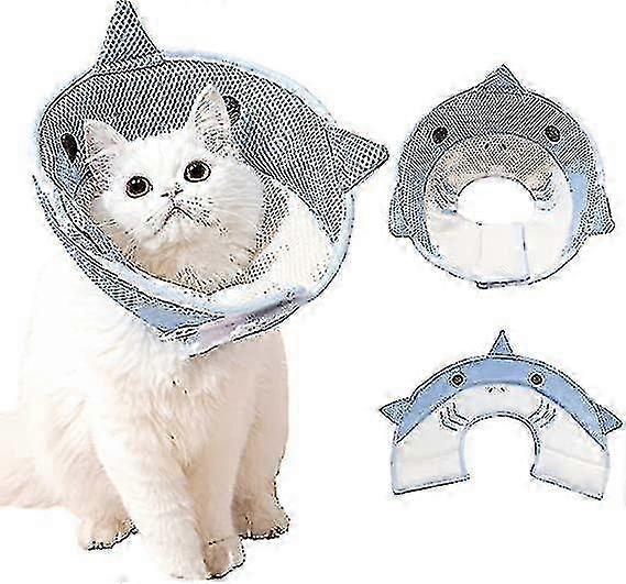 <p>Comfortable \u0026 MovableUpgraded cat cone as a comfortable protective barrier that allows your pet to move freely and feel comfortable. Unlike traditional hard plastic cones which hurt your pet's wounds, our soft cat collars won't frighten, tire or obstruct your pet's vision for your lovely pet. Choose us and your pet will love it.</p> <p>Soft \u0026 Comfy CollarShark style cat recovery collars are made from high-quality mesh cloth and sponges with a soft and breathable design to keep cats comfortable. The cone collar can be folded up or down, your pet can see around well and move around easily like eat, poop or play.</p> <p>Adjustable Recovery ConeThe loop closure fastener design makes this pet recovery collars \u0026 cones easy to wear. It stabilizes the collar and cannot be easily removed by pets. You can adjust the tightness slightly according to your pet's neck circumference to make your pet more comfortable and comfortable.</p> <p>Widely UsedThe cat cone can not only be used in grooming situations such as bathing and nail trimming to protect humans from bites, it can also be used as an everyday cat collar to prevent anxious cats from biting or licking. Lightweight comfortable pet cone for small animals. The blue shark design makes your pet look very cute and perfect for everyday photo shoots.</p> <p>Size NoticeS fit for weight 2.2-5.5lbs, neck girt 7.8-9.1\</p>
