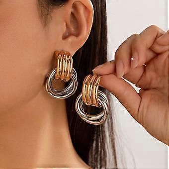 SHIXIN Women's Geometric Punk Style Earrings Gold Circle Shape Decorative Ear Jewelry Sensitive Design