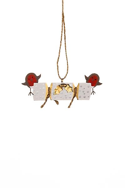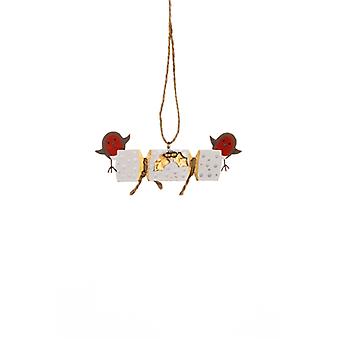 Shoeless Joe Metal Cracker with Robins Christmas Tree Decoration