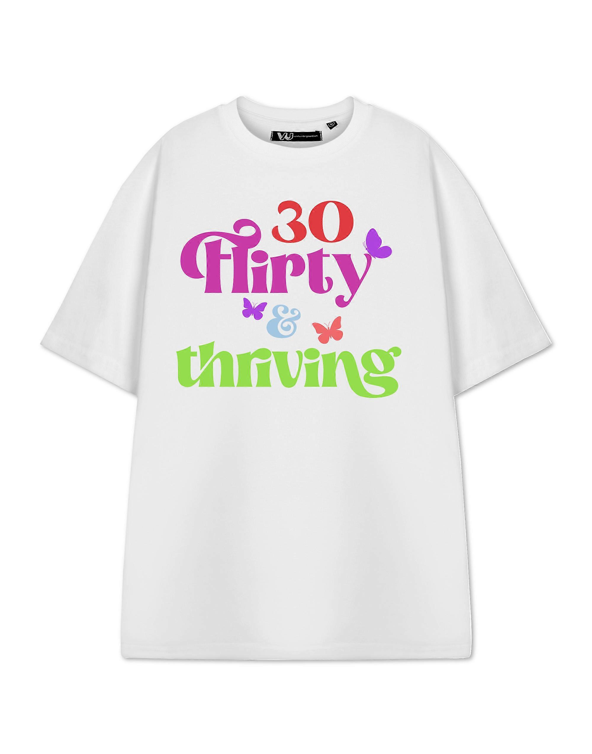 Show Me The Merch Womens Short Sleeved T-Shirt White 30 Flirty & Thriving