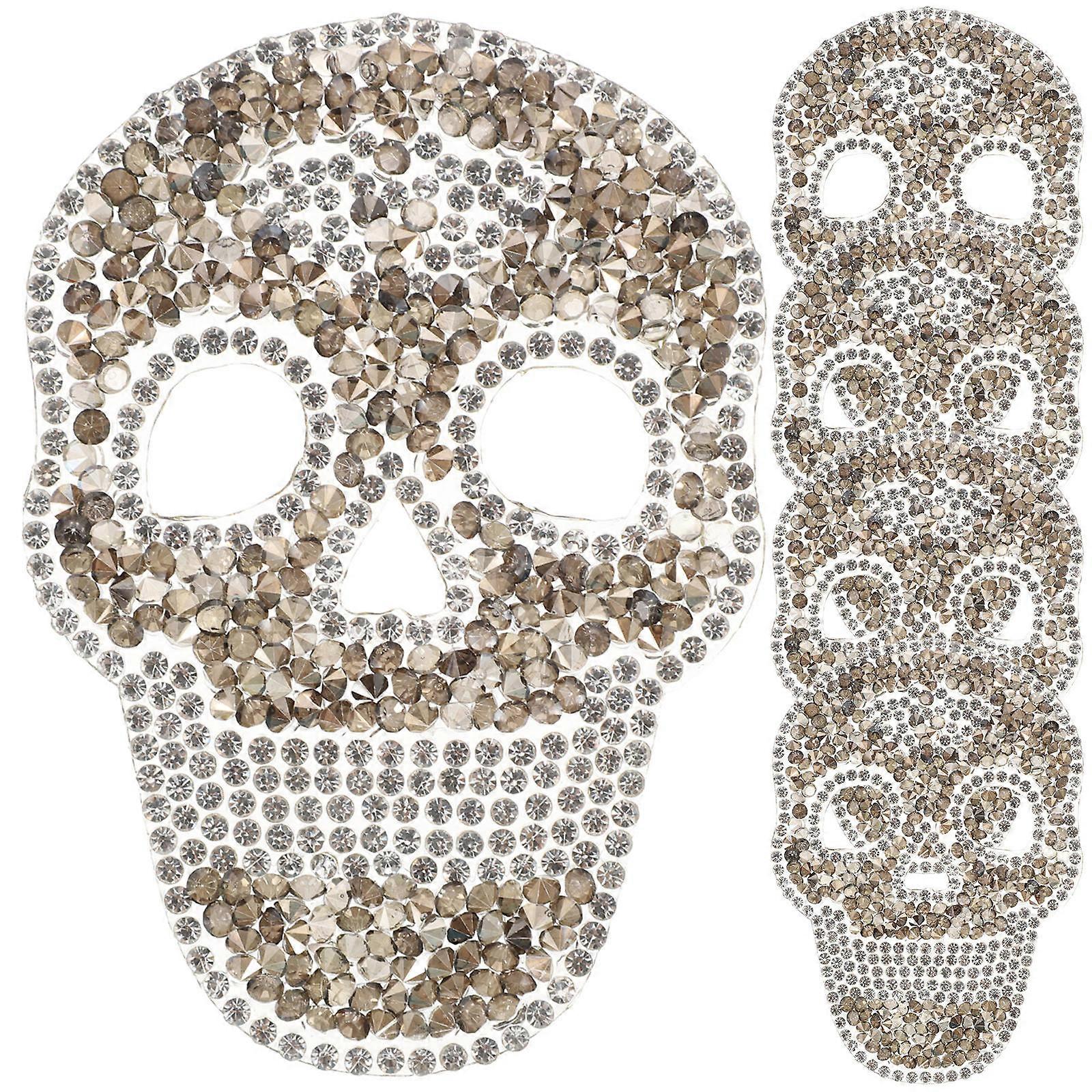 Skull Rhinestone Patches Iron On Applique Repair Patch for DIY Clothing, Jeans, Bags Halloween Skeleton Embellishment Accessory