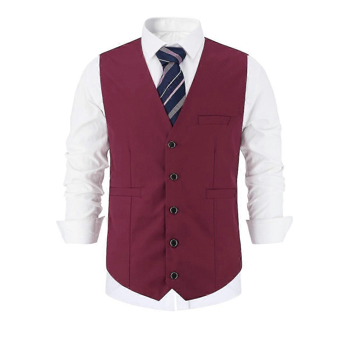 Sliktaa Mens Formal Vest Breasted Suit Waistcoat L Red
