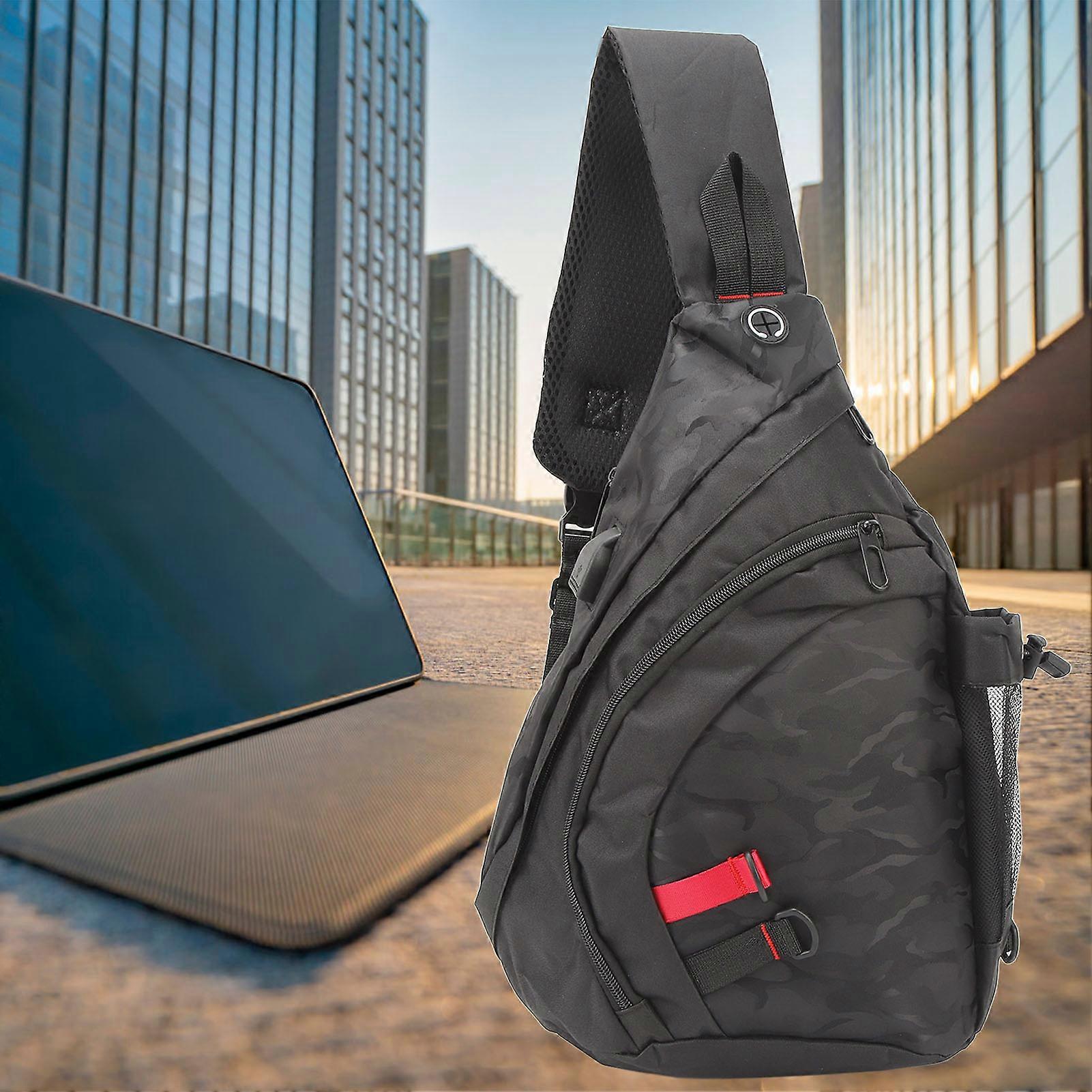 Sling Backpack Camouflage Black Large Capacity Side Pocket Detachable Buckle Front Hooks Shoulder Bag for Cycling