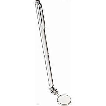 Small, compact inspection mirror with flexible ball joint and adjustable length telescopic rod, tool.