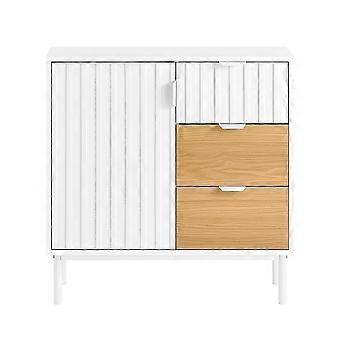 SoBuy FSB91-WN,White and Natural Console Table-Steel Legs Hall Table Sofa Table Side Table End Table Sideboard with 3 Drawer and Door for Display