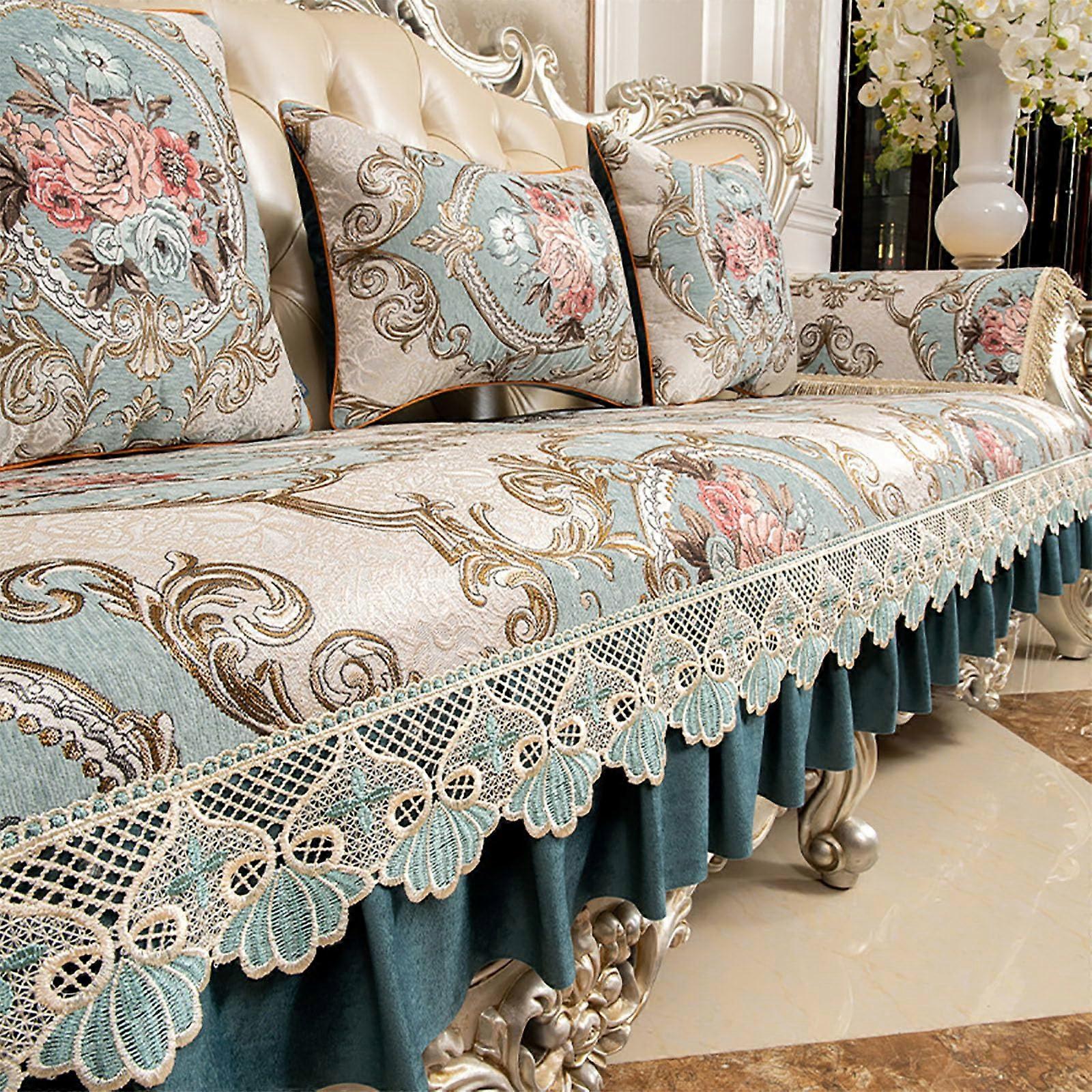 Sofahusse SlipResistant Sofa Cover for 1 2 3 4 Seater Chenille Washable Light Blue 80x180cm