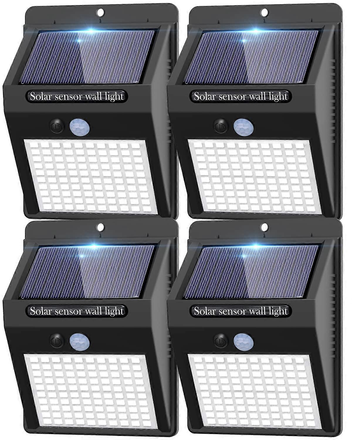 🌞[Ultra-Bright Solar Lights]: Wider Illumination Coverage;Equipped with 100 leds,solar motion lights outdoor offers a larger coverage of luminosity, which can illuminate space about 30㎡ at night.A sufficient 4-piece package can illuminate your front door, backyard, garage, deck, garden,fence,etc. 🌞[3 Considerate Modes]: solar motion sensor lights has 3 modes to meet your different needs:1.) medium-brightness mode, 2.)low light induction mode, 3.) Induction lighting mode. The powerful sensor ball head provides powerful motion sensitivity up to 10-16 feet, providing convenience and safety for your life. 🌞[2200mAh Large Battery]: With 100 brilliant LEDs, solar wall lights outdoor can provide a super bright illuminance for a wide area.Built in 2200mAh Li-ion battery,solar security sights can light up about 8-10h after fully charged. This is a complete home security version, very suitable to meet your needs all night. 🌞[IP65 Waterproof Solar lights]: More professional weather resistance;With IP65 waterproof technology, solar security lights with motion sensor can withstand all kinds of terrible weather. Even if it snows and freezes, they can pass the winter without any problems. 🌞[🎁Best gift/presents]: High Efficiency Solar Panel and Eco-Friendly.Hanging them was a breeze because they came nicely designed,only simply find a place with sufficient sunshine, and most importantly - they add so much to the yards!Therefore, especially on winter nights, they are the best gift, whether for your parents, elders, or friends,etc. 4 Pack Solar Motion Lights Outdoor designed for enhanced security and illumination Features 100 LEDs for ultrabright lighting, covering an area of approximately 30㎡ at night Equipped with 3 adjustable modes to suit various needs Medium brightness mode Low light induction mode