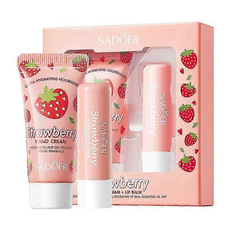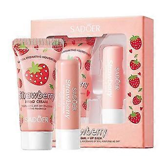 Strawberry Hand Cream & Lip Balm Set - Nourishing Moisturiser Gift Set for Dry Hands & Chapped Lips