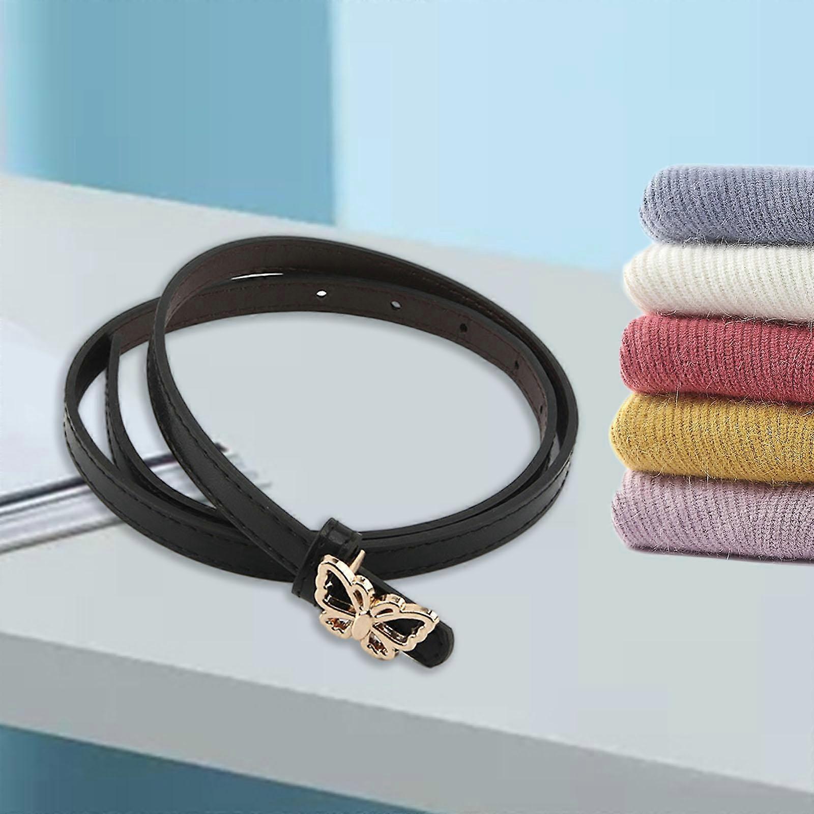 Ladies Leather Belt Stretch Strap Butterfly Button for Girl Jeans Pants