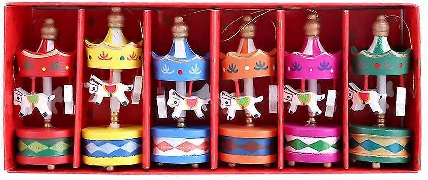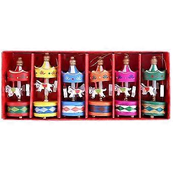 Sunrain 6Pcs / Set Vintage Horse Carousel Wooden Music Box Mini Christmas Tree Pendant Christmas B