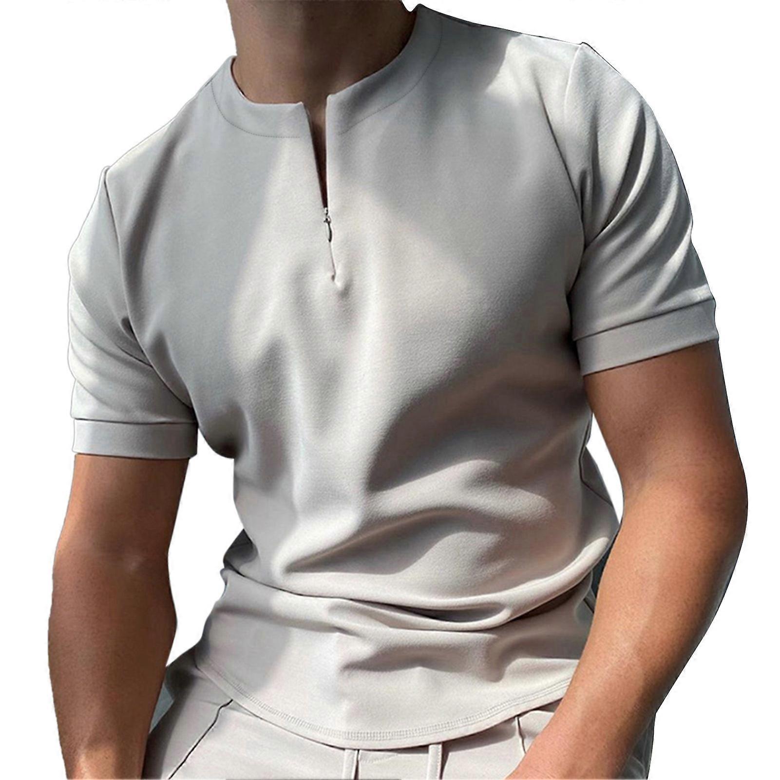 Men T Shirt Pure Colour Short Sleeve Zipper Front Casual Polyester Tops for Summer Home