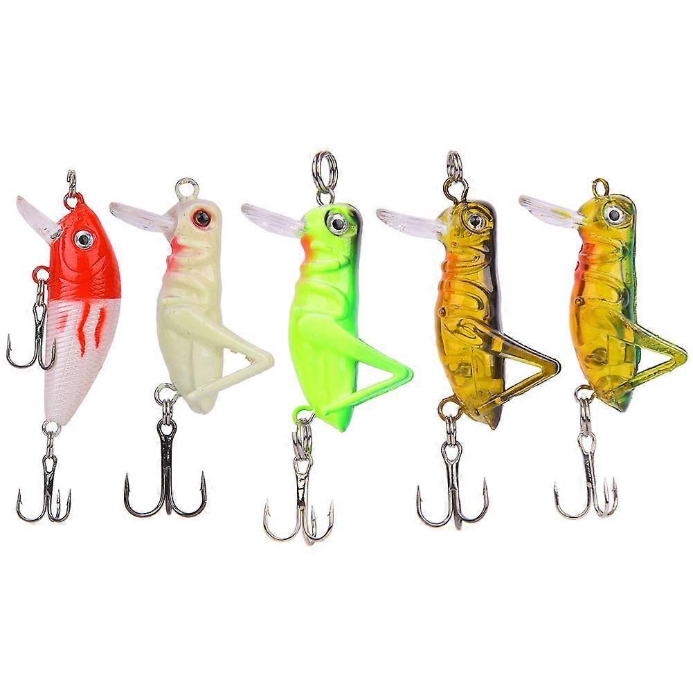 T0046 5Pcs Universal Lifelike Fresh Water Hard Bait Grasshopper Minnow Set Artificial Fishing Lure Baits Kit