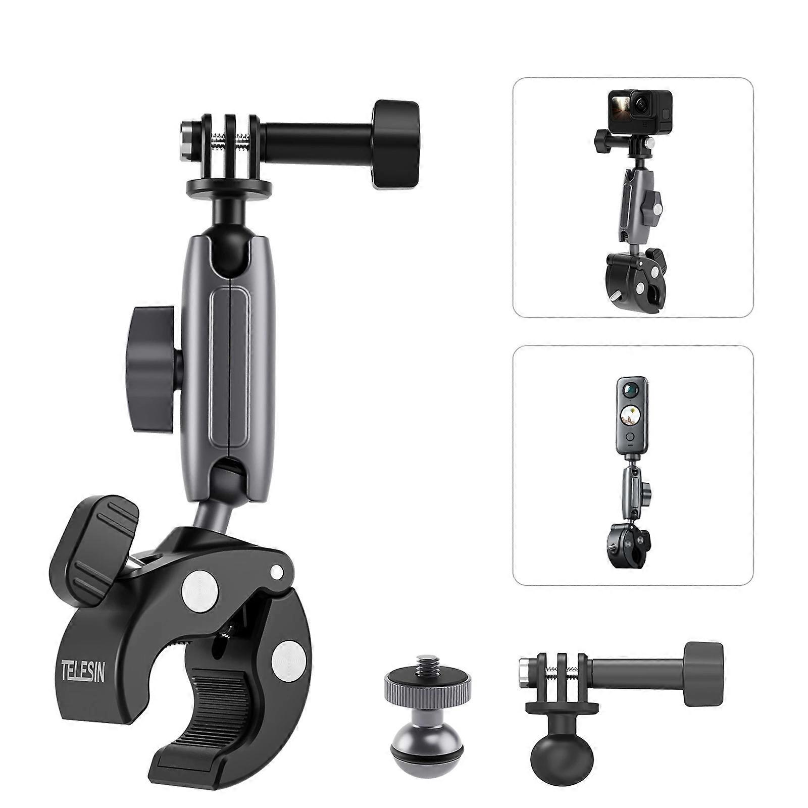 TELESIN Aluminum Alloy Crab Claw Handlebar Tube Clamp For Sports Camera Mobile Phones