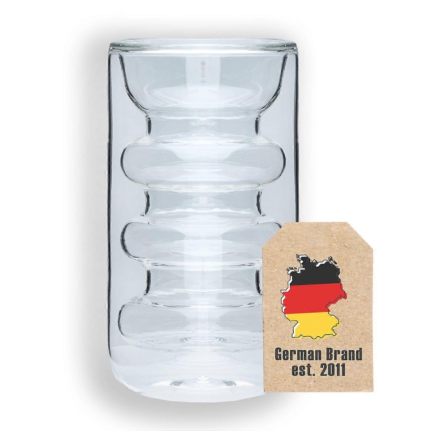 Thermo Kaffee Tee Glas Set - Rillen Style - Doppelwandig Mundgeblasen isoliert für Latte Macchiato, als Teeglas oder Kaffeeglas mit Henkel