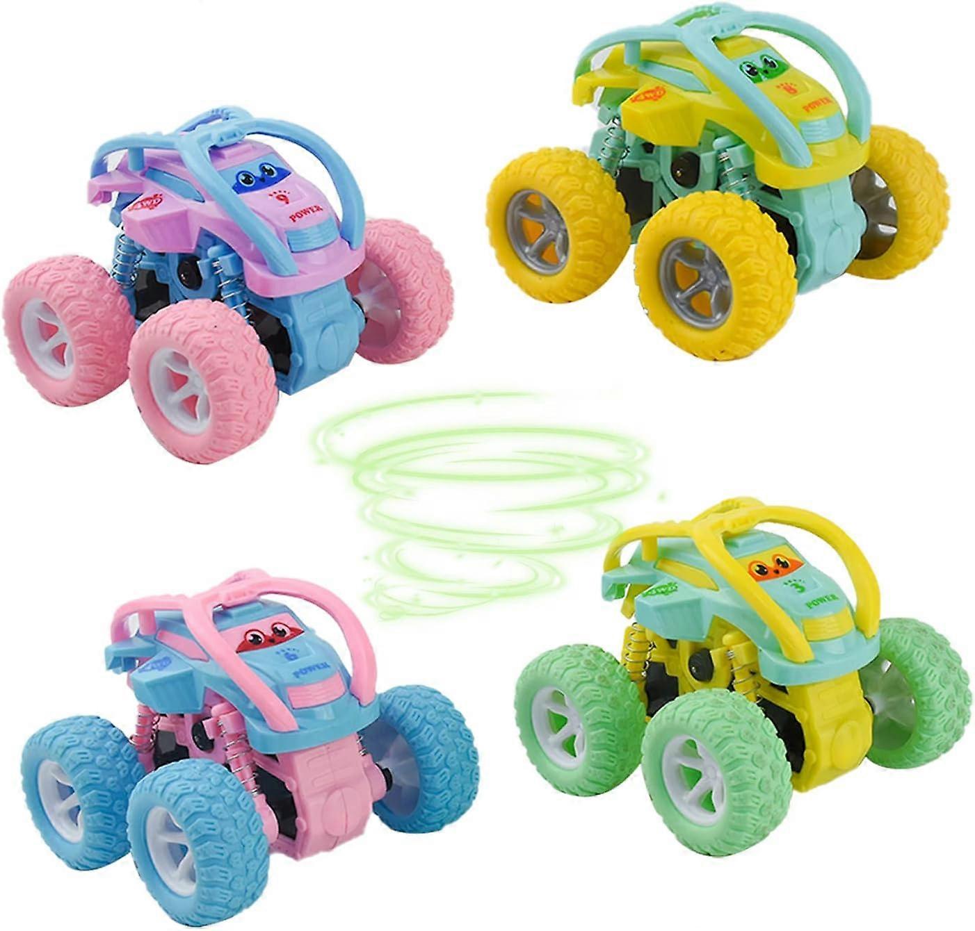 Tizund 4PCS Children's Rollover Stunt Car, 360 Degree Rotatable Push-Pull Toy Truck, Children's Inertia Four-wheel Off-road Racing Toy, Crash Resistan