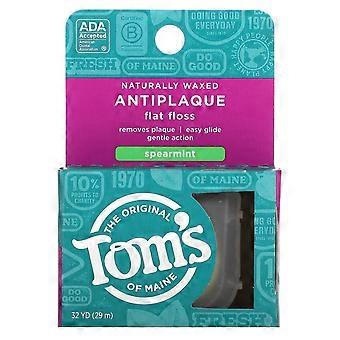 Toms of Maine, Naturally Waxed Antiplaque Flat Floss, Spearmint, 32 yd (29 m)