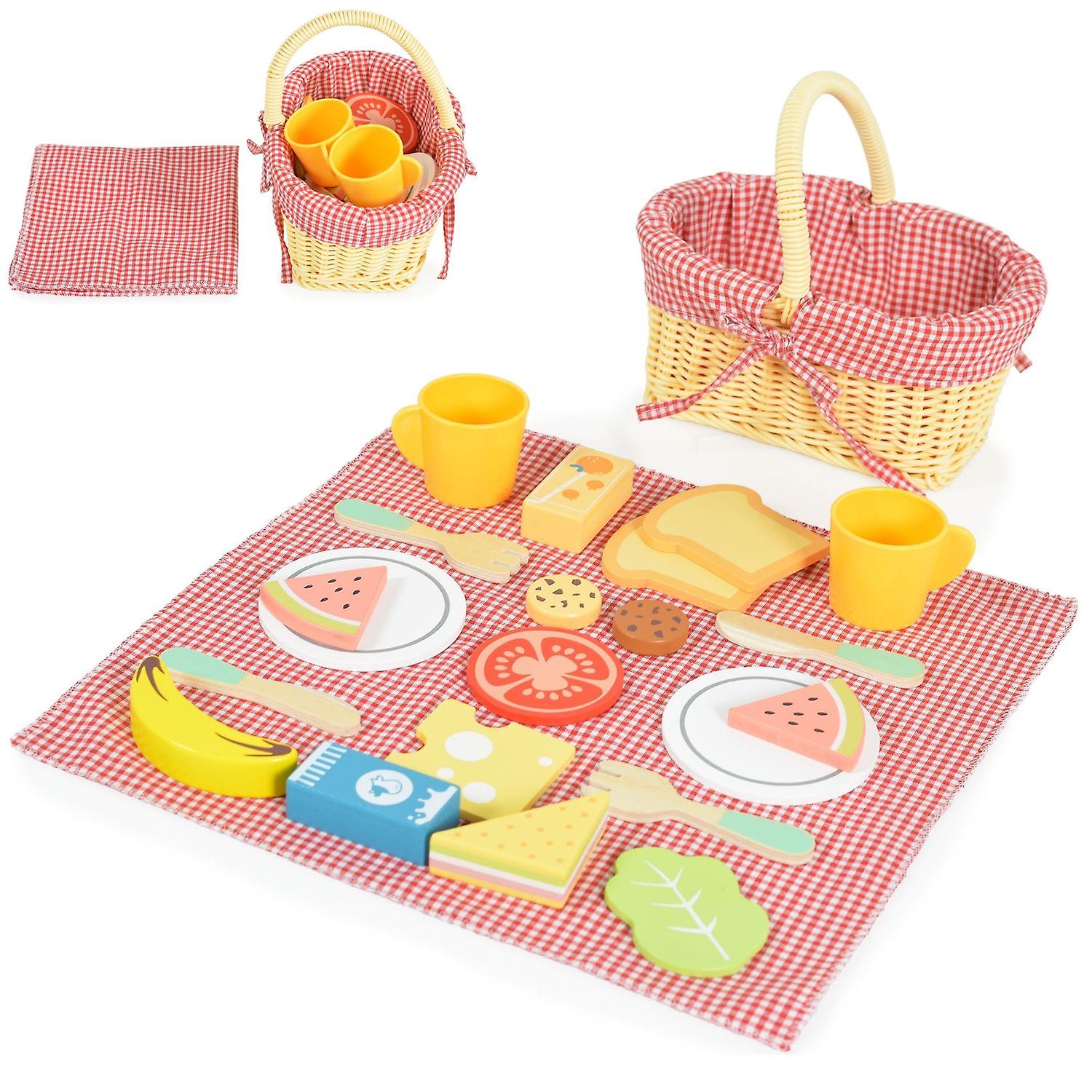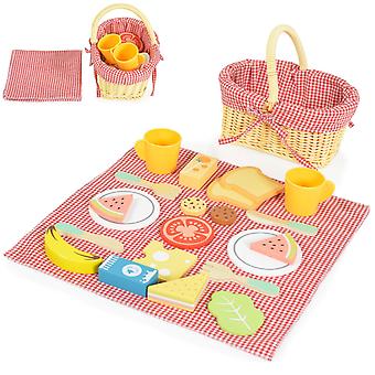 Tooky Toy Spielzeug Picknickkorb TK454 Holz, Picknickdecke, Teller, Lebensmittel